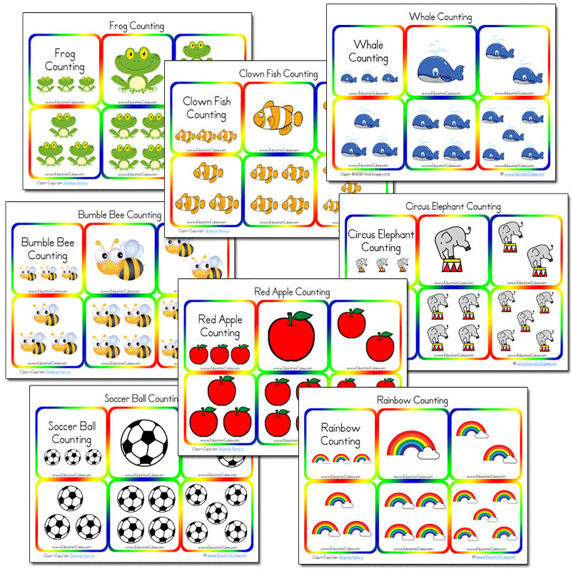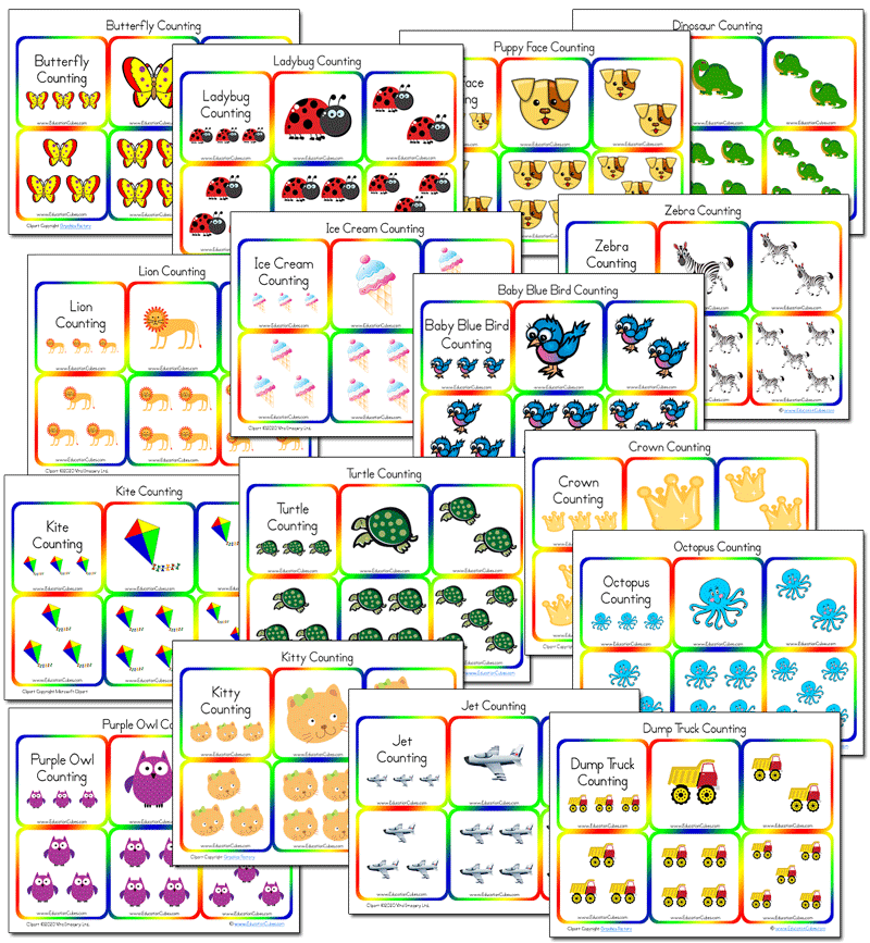 Each of the sets contains insert cards for one to 12 objects –